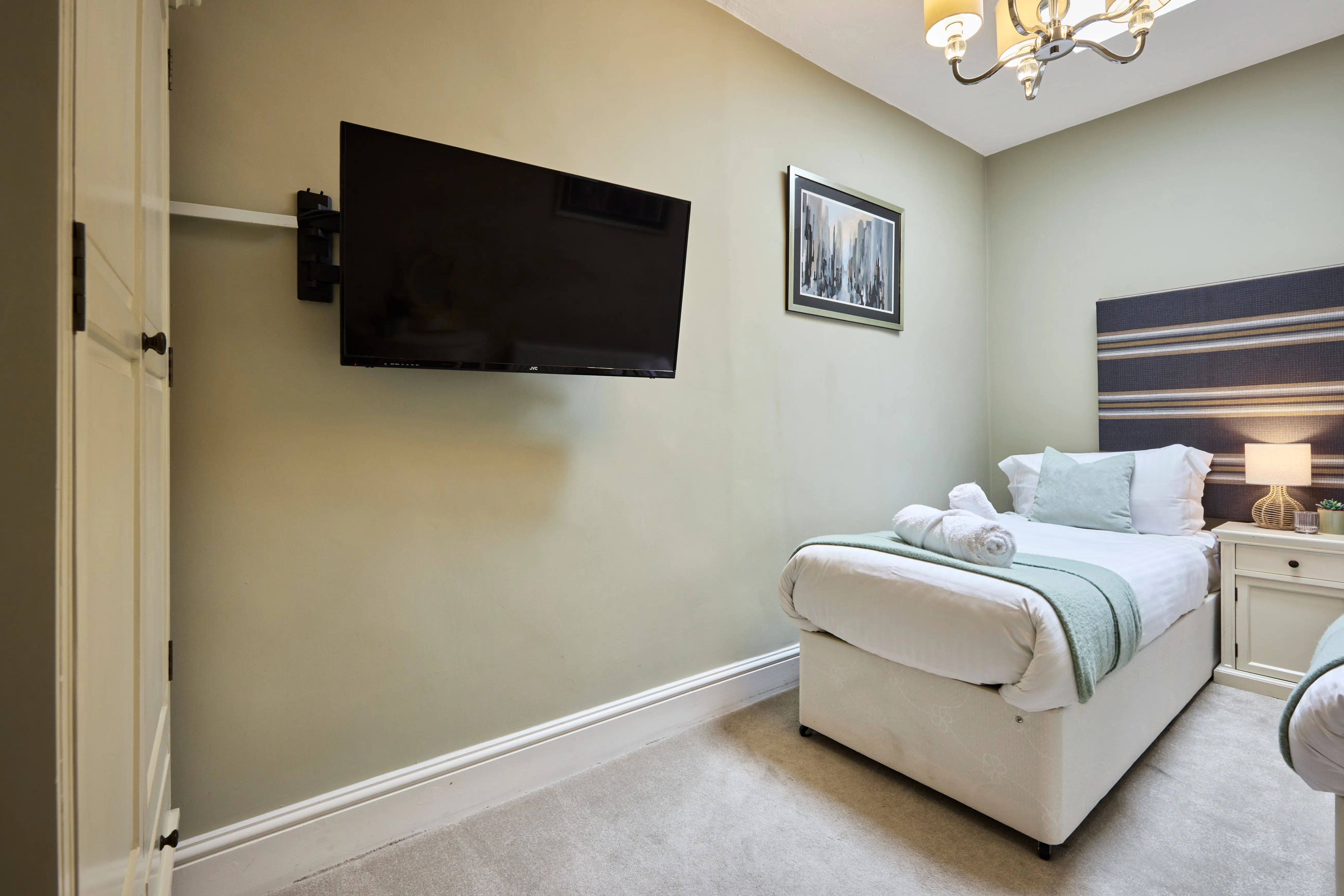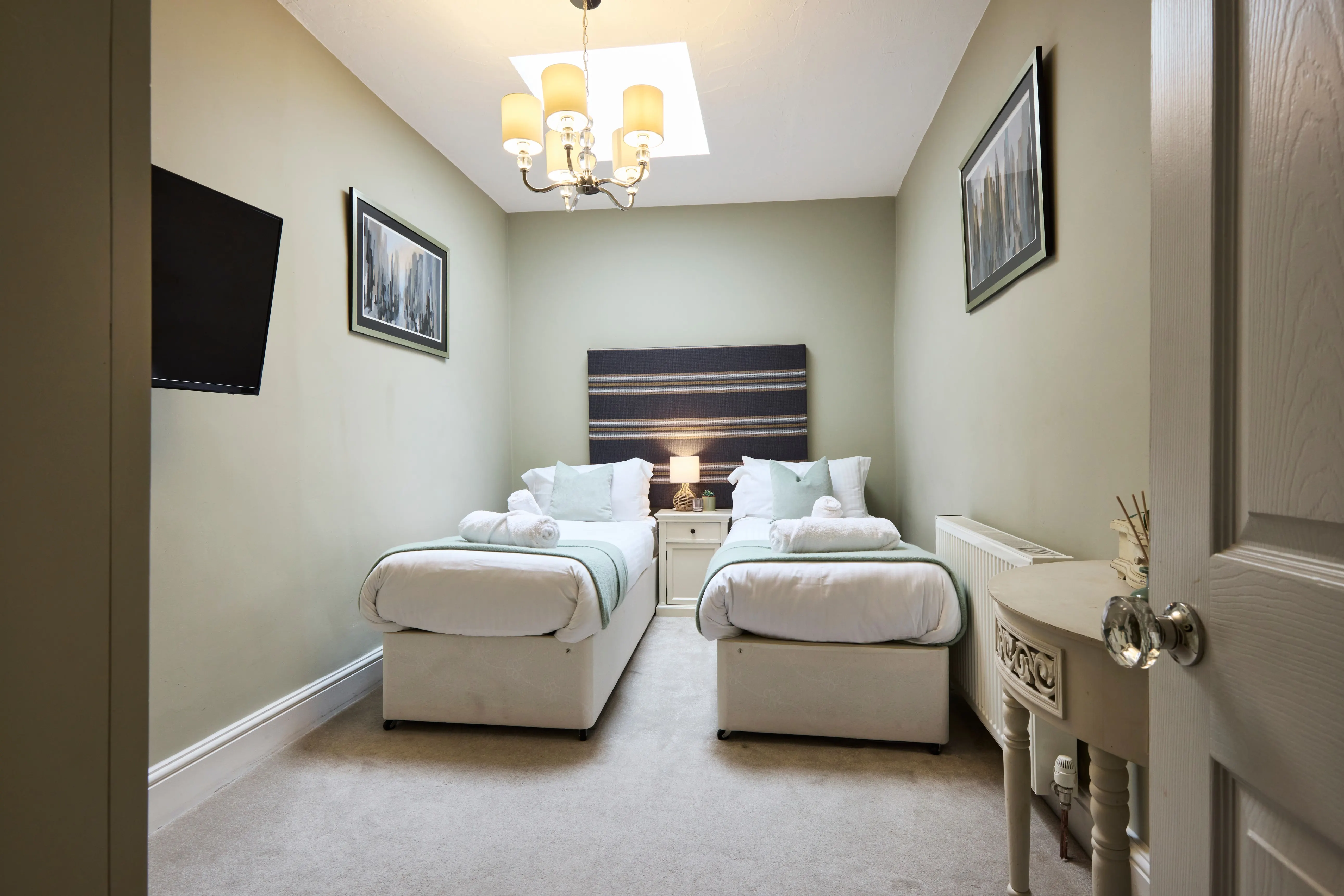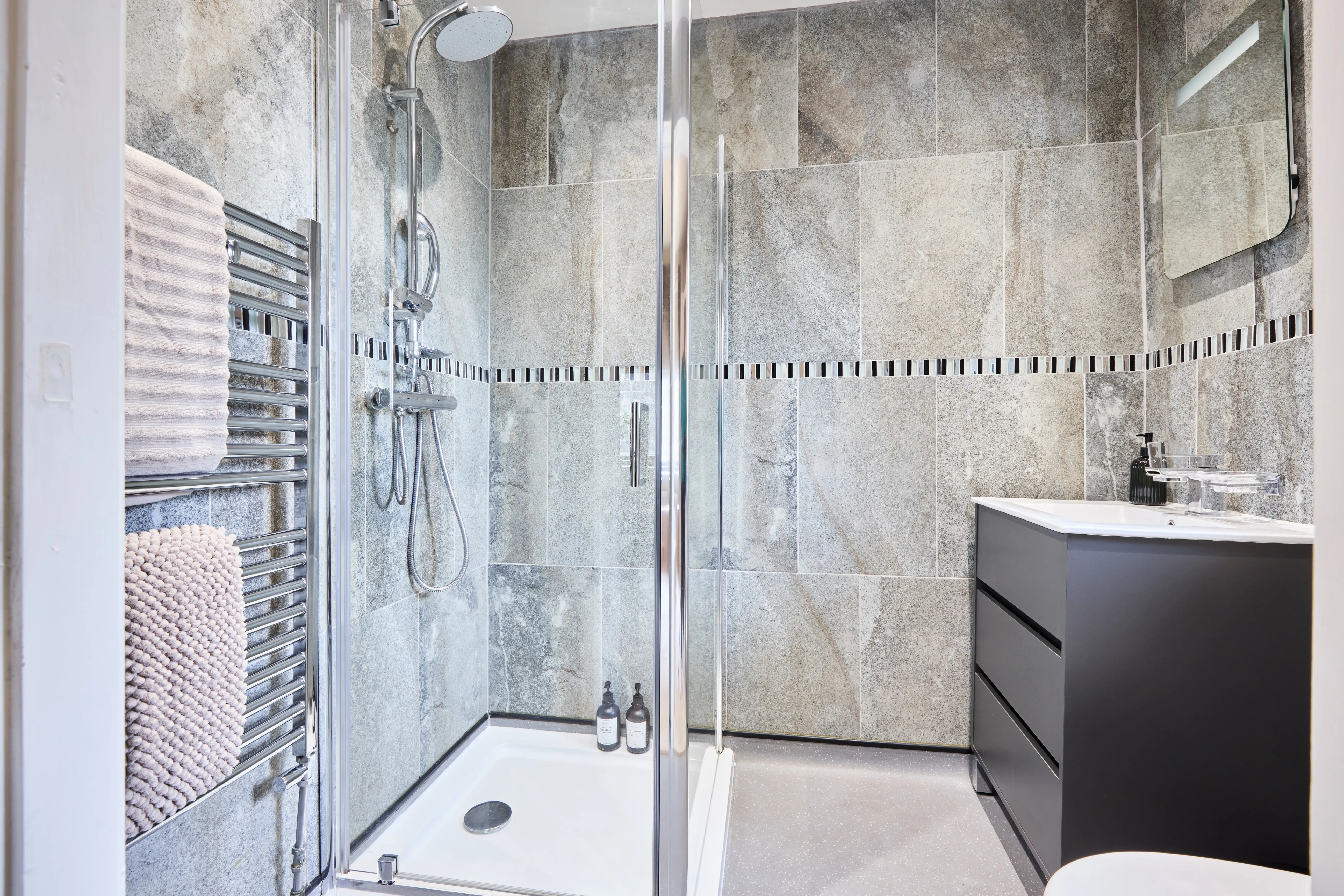 The three well-appointed bedrooms offer comfortable hotel quality beds, the master bedroom having a king size bed, it's own ensuite, with luxury shower, wall to wall wardrobes and a 42" TV with freeview. The second bedroom boasts a double bed with a dressing table and chair and a 40" TV with freeview. While the third bedroom is comfortable and spacious twin with 2 single beds and a 40" TV complete with freeview also. There is also a separate contemporary bathroom with another luxury walk-in shower.