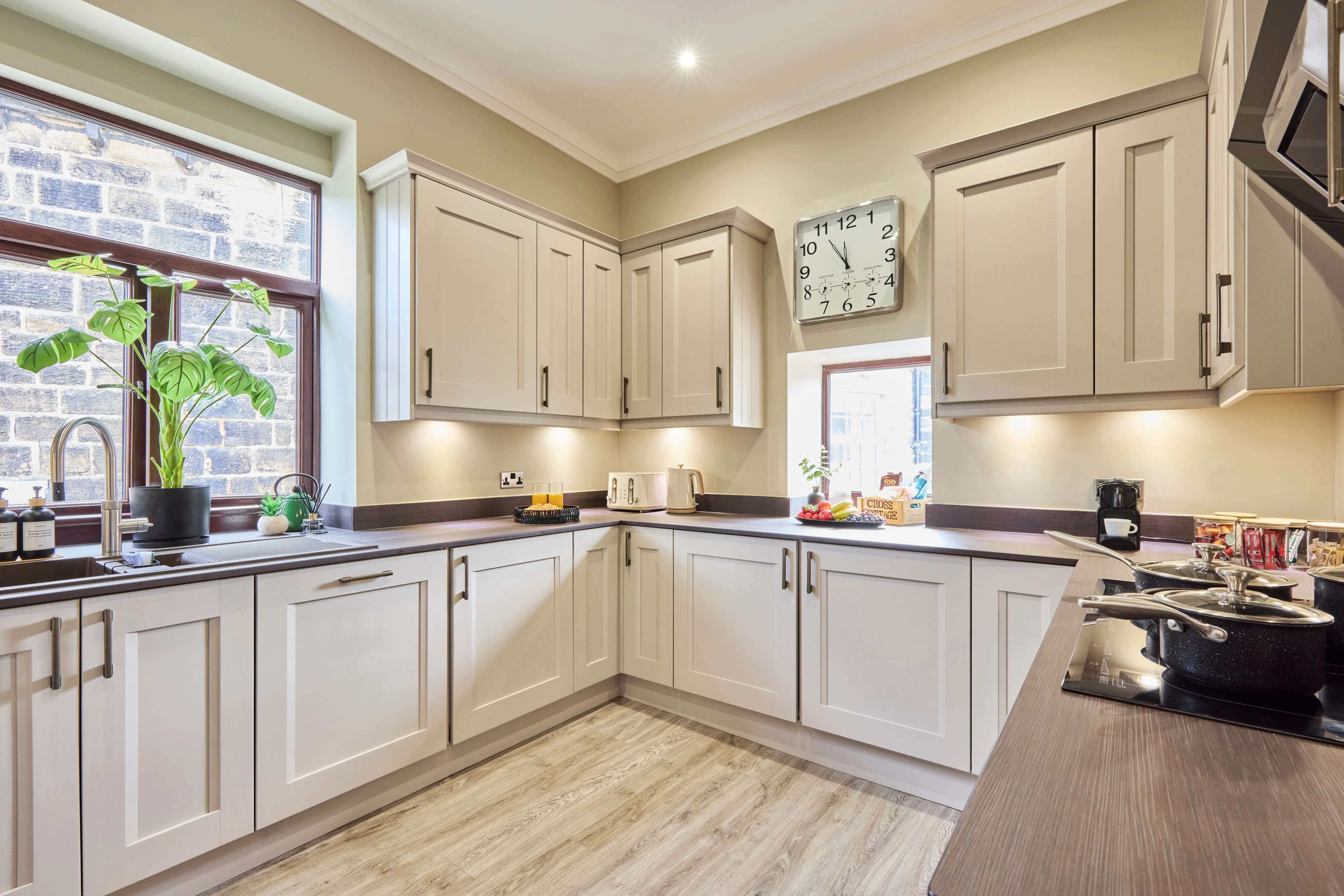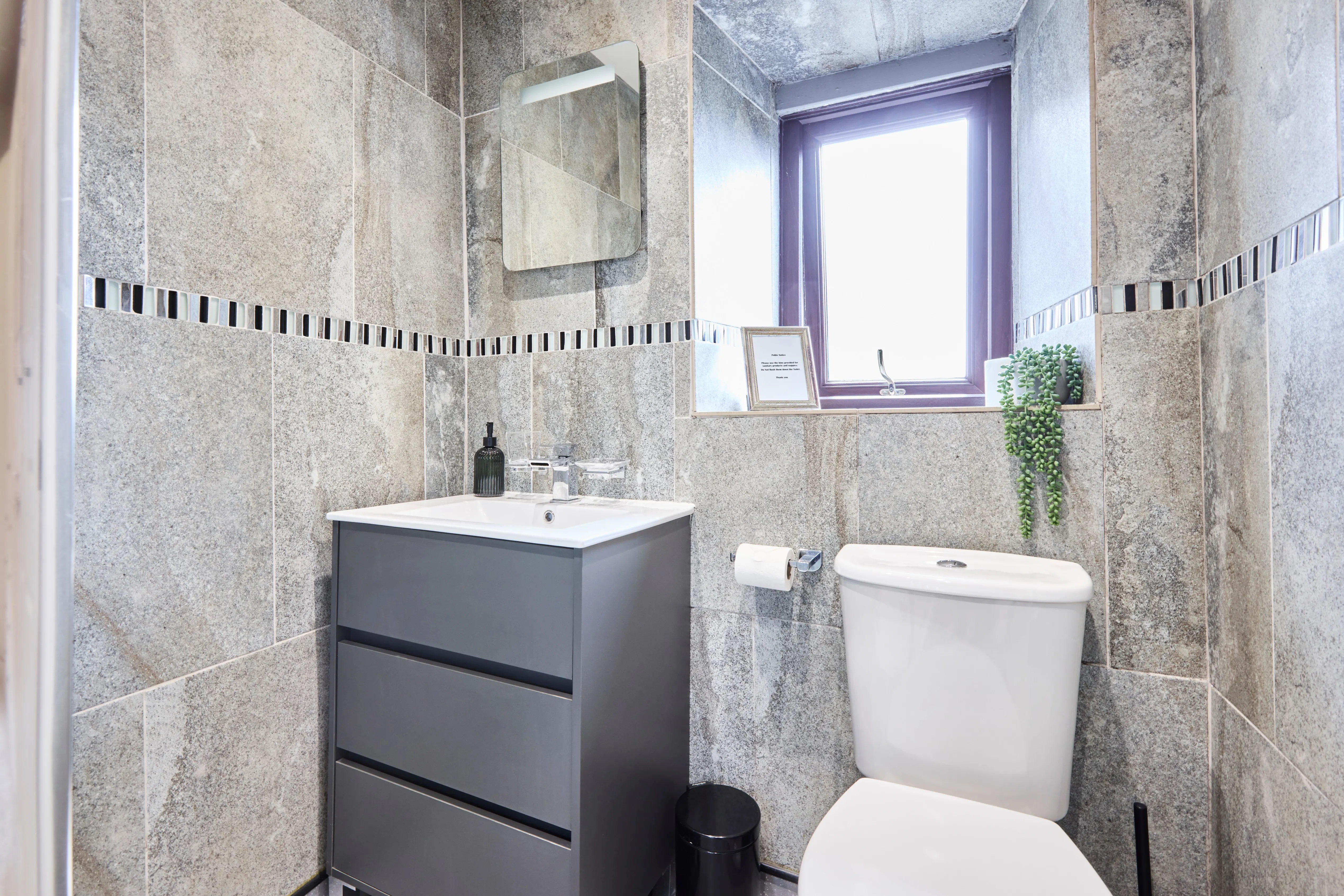 The contemporary kitchen boasts a quooker boiling water tap, four ovens, inluding a built in combi-microwave and a six ring induction hob, perfect for the chef in the family to cook delicious meals after a long day exploring. Complete with a Fridge/Freezer, Dishwasher, Washer/Dryer and even a Nespresso coffee machine along with a selection of coffee pods the kitchen is fully equipped with all you need for a comfortable home from home stay. There is a quaint patio area with seating to the rear of the property, providing an ideal spot for al fresco dining after a long day exploring all Haworth and the surrounding areas have to offer.